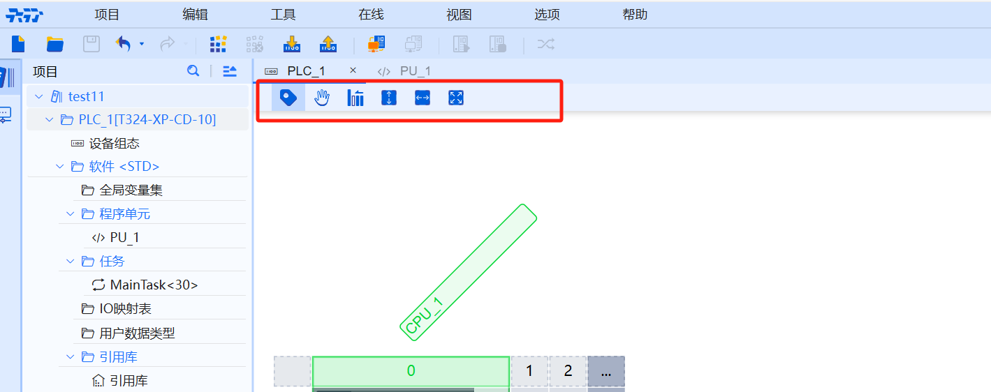 工作区域是工程师进行变量编辑、软件编程、任务管理、IO映射表编辑、引用库管理、用户数据类型编辑以及在线诊断功能实施、监控表监视、任务监视 硬件配置的统一窗口。