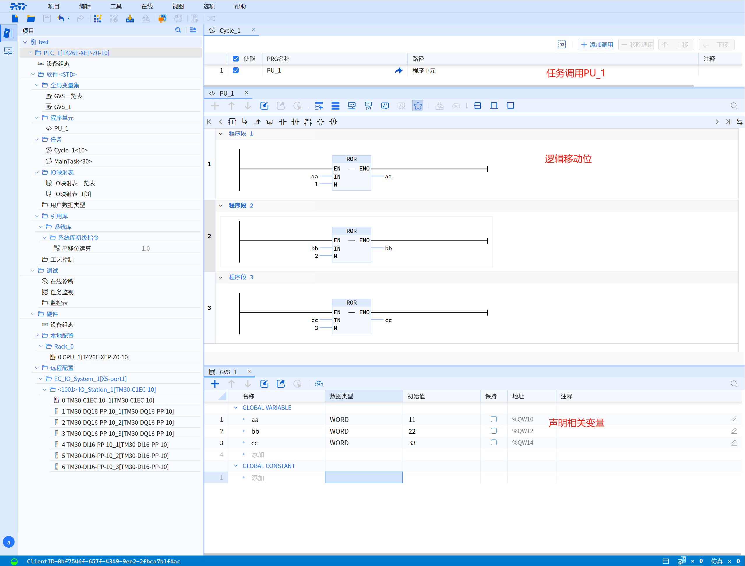 - Click online to view the project running results and the status of the project while the software is running, as shown in the figure below: